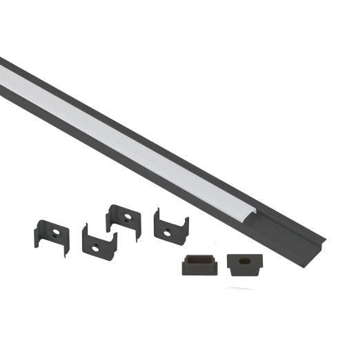 Комплект с врезным анодированным профилем 2206B 22х6 мм, 2 м, черный САВ251 предназначен для установки светодиодных лент шириной до 10 мм. Он защищает ленту от механических повреждений, равномерно рассеивает свет и способствует отведению тепла - это продлевает срок службы LED-элементов. Подходит для встраивания в деревянные, гипсокартонные или металлические конструкции: ниши, потолочные бортики, тумбы, шкафы, лестницы, рекламные щиты.