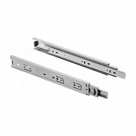 Эти направляющие используются там, где нужен полный доступ к содержимому ящика - например, в кухонной мебели, рабочих столах, медицинских тумбах, серверных шкафах и промышленном оборудовании. Комплект включает пару направляющих: одна устанавливается на корпус, другая - на ящик. Благодаря шариковой механике движение происходит легко, без заеданий даже при нагрузке.