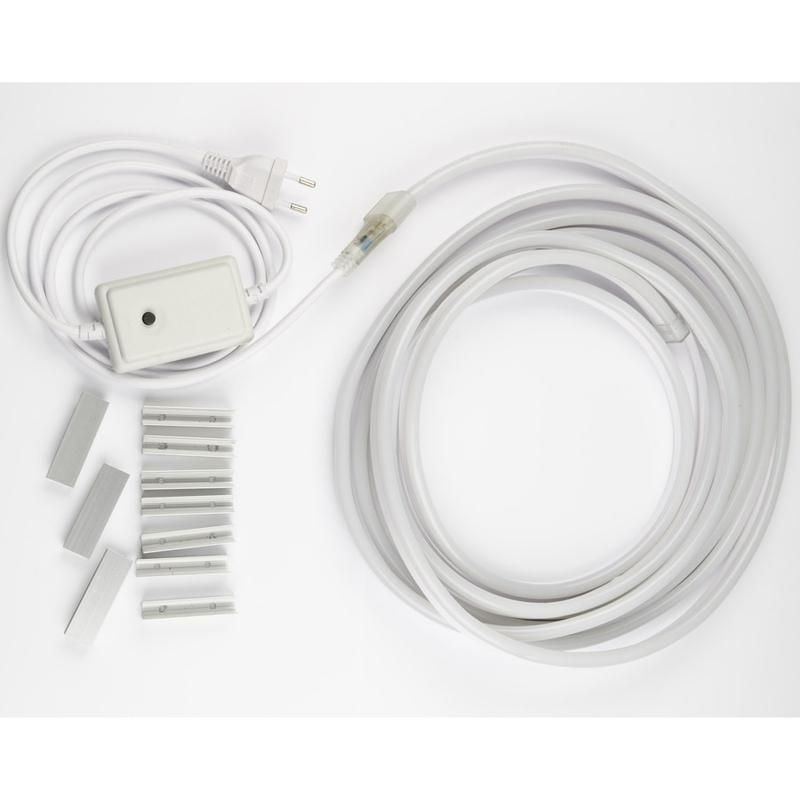 Комплект содержит всё необходимое для установки: саму ленту, контроллер, сетевой шнур длиной 1,5 м, 20 монтажных скоб и 3 заглушки. Установка возможна на любую ровную поверхность - металлическую, пластиковую, деревянную. Для фиксации используйте приложенные скобы. Перед монтажом проверьте, что место резки совпадает с отметкой на ленте - каждый участок между метками можно отрезать отдельно. После резки обязательно закройте конец заглушкой, чтобы сохранить степень защиты IP67. Контроллер позволяет менять цвет, яркость и режимы свечения через пульт.