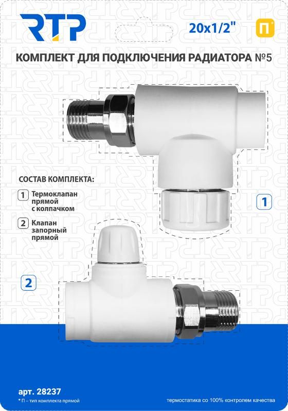 | Комплект № 5 (Термостатический клапан прямой с колпачком клапан запорный прямой) PPR 20х1/2 RTP 28237 | 24.02.2026 | Под заказ | 726,06 ₽ | шт. | от 30 дней |