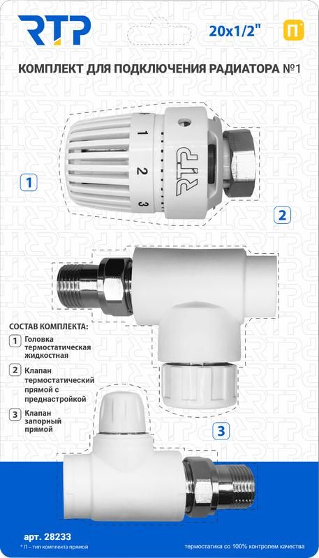 | Комплект № 1 (Термостатический клапан прямой с колпачком клапан запорный прямой термостатическая головка) PPR 20х1/2 RTP 28233 | 23.02.2026 | Под заказ | 1 873,25 ₽ | шт. | от 30 дней |