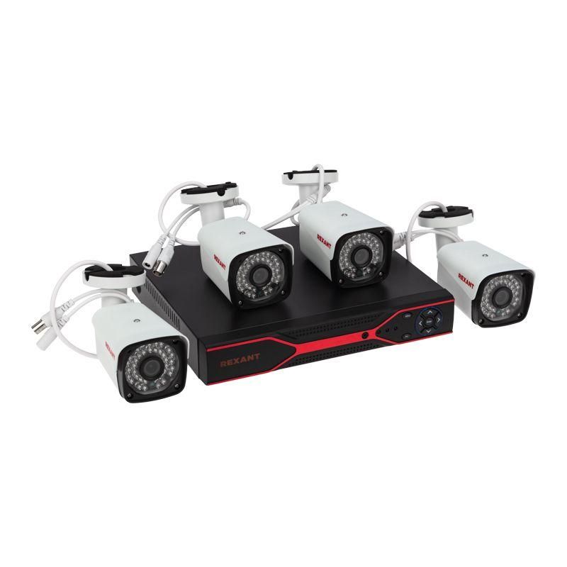 Комплект видеонаблюдения REXANT - 45-0550 представляет собой готовое к установке решение, включающее 4 наружные AHD видеокамеры с разрешением 1944P и 4-канальный AHD-видеорегистратор.