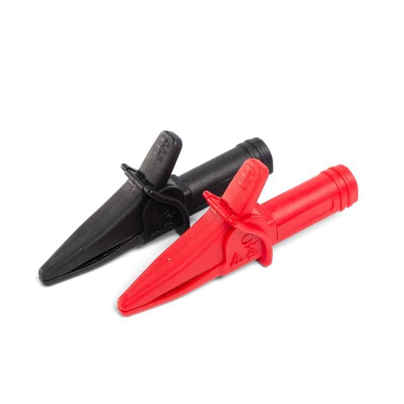 Зажимы "крокодил" KT 3101 легко подключаются к любому измерительному прибору с входными гнездами для банановых разъемов. Для установки достаточно вставить разъем в соответствующий порт прибора и закрепить металлический зажим на целевой точке цепи. Убедитесь, что поверхность контакта чистая и не окисленная - это обеспечит надежный контакт и точность измерений.