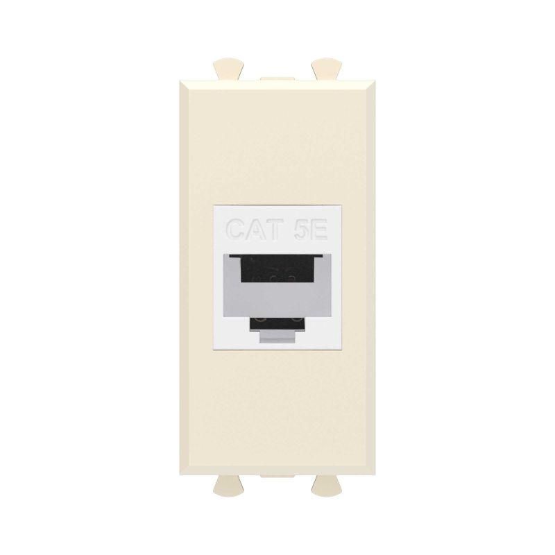 Розетка компьютерная RJ-45 без шторки модульная, категория 5е, 1 модуль, цвет Ванильная дымка от бренда DKC (ДКС), артикул 4405661 - это модульный сетевой разъём для организации локальной сети в офисах, серверных помещениях и на рабочих местах. Устройство совместимо с кабель-каналами и устанавливается в стандартную модульную рамку.