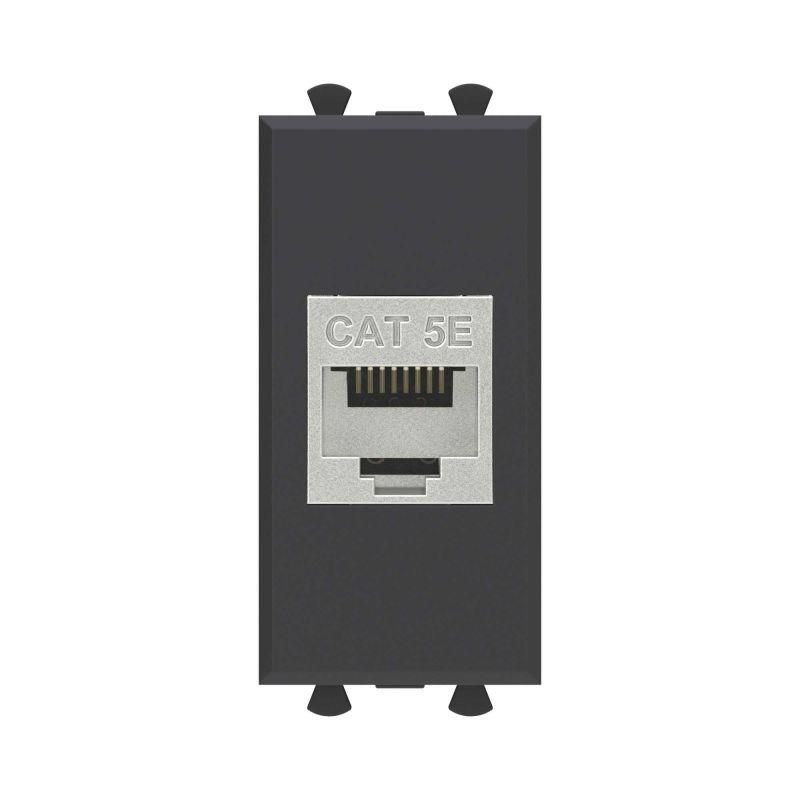 Компьютерная розетка RJ-45 без шторки модульная, кат.5е экранированная, "Avanti", "Черный матовый", 1 модуль | 4412761 DKC ДКС