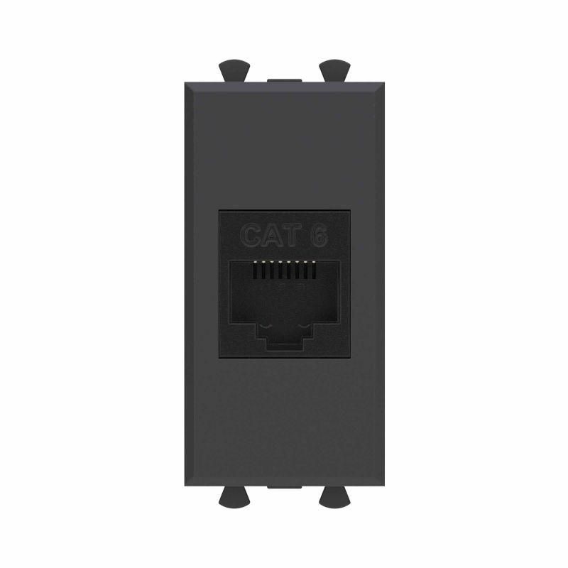 Компьютерная розетка RJ-45 без шторки модульная ,кат.6, "Avanti", "Черный матовый", 1 модуль | 4412691 DKC ДКС