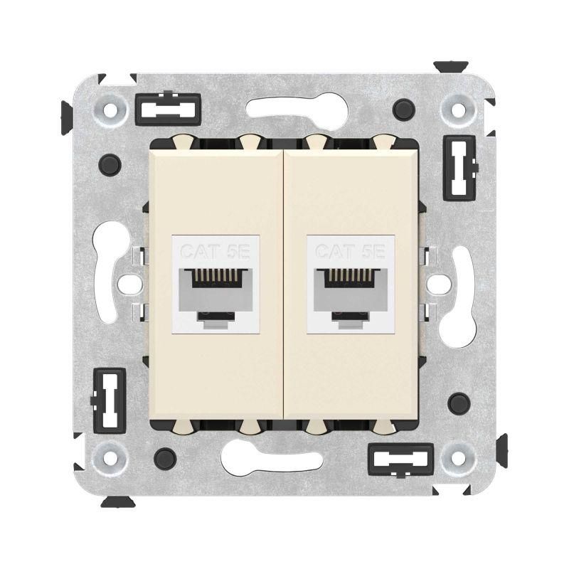 Розетка компьютерная RJ-45 без шторки в стену, категория 5е, двойная, цвет Ванильная дымка используется для подключения Ethernet-устройств - компьютеров, принтеров, IP-камер, телефонов VoIP, сетевых хранилищ и других гаджетов, требующих проводного интернет-соединения. Подходит для установки в жилых помещениях, офисах, серверных комнатах и на производстве там, где нужна устойчивая локальная сеть. Двойной разъём позволяет подключить два устройства через одну точку, экономя место и количество проходов в стене.
