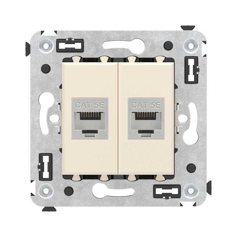 Розетка компьютерная RJ-45 без шторки в стену, категория 5e, двойная, экранированная, цвет Ванильная дымка от бренда DKC (ДКС), артикул 4405764 - это модульный сетевой разъём для скрытой установки в стену, обеспечивающий надёжное подключение устройств Ethernet с высокой помехозащищённостью.
