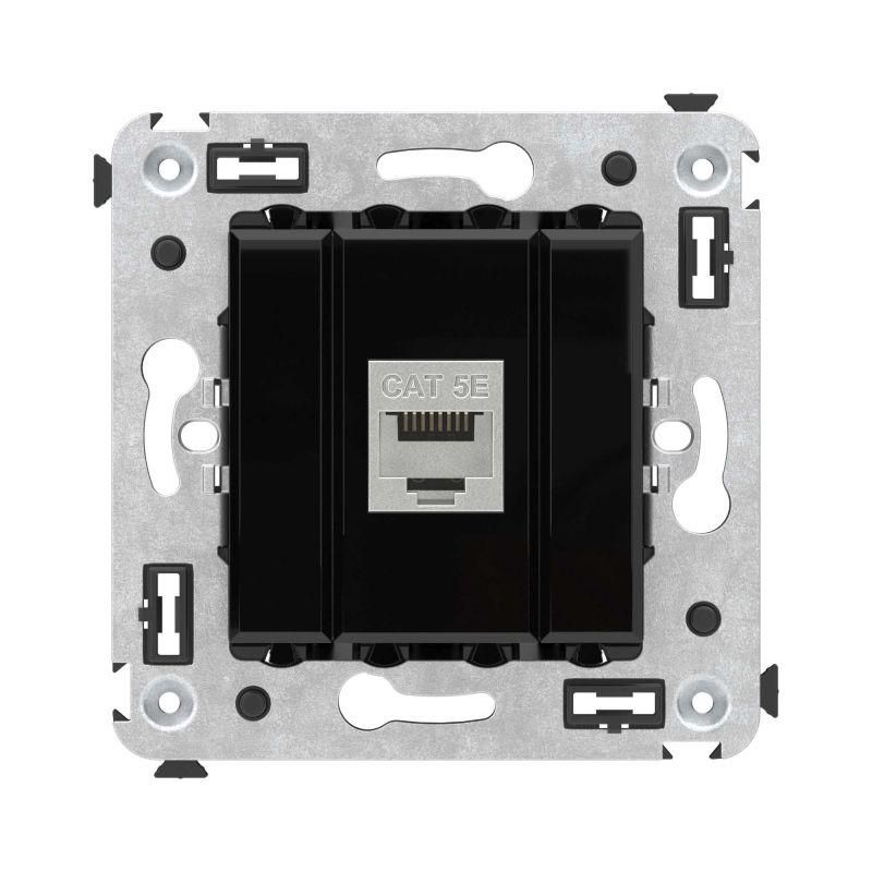 Компьютерная розетка RJ-45 без шторки в стену, кат.5e одинарная экранированная, "Avanti", "Черный квадрат" | 4402763 DKC ДКС