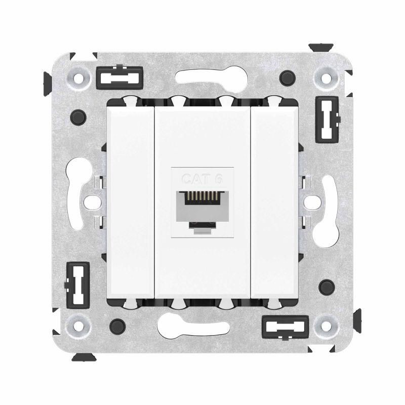 Розетка компьютерная RJ-45 кат.6 одинарная без шторки для скрытого монтажа используется для подключения Ethernet-устройств - компьютеров, IP-камер, телефонов VoIP, принтеров, сетевых хранилищ. Подходит для офисов, учебных заведений, центров обработки данных и других помещений, где требуется надёжная и эстетичная фиксация сетевой точки. Установка осуществляется в подрозеточную коробку через рамку-суппорт серии Avanti.