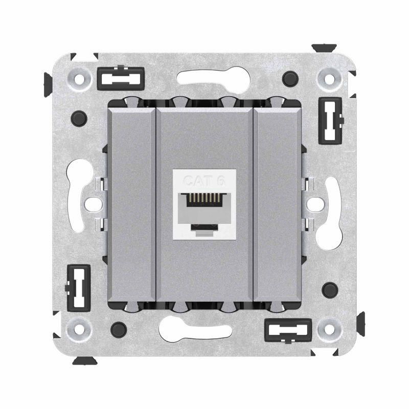 Розетка компьютерная RJ-45 кат.6 одинарная без шторки для скрытого монтажа, закаленная сталь от бренда DKC (ДКС), артикул 4404693, предназначена для надёжного подключения сетевых устройств через Ethernet-кабель в системах локальной сети. Устройство выполнено в модульной серии Avanti и совместимо со стандартными подрозеточными коробками.