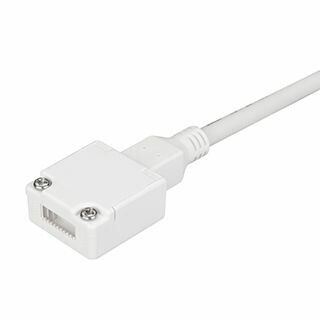 Коннector питания для ленты ARL-PV (15.5x6мм) пластик совместим только с лентами ARL-50000PV и ARL-10000PV, имеющими точную геометрию контактов 15,5×6 мм. Установка происходит путём вставки ленты в коннектор до щелчка - пайка не требуется. Провод 600 мм позволяет легко вывести его к источнику питания. Для надёжной работы убедитесь, что лента плотно вошла в зажимы, а изоляция не повреждена.