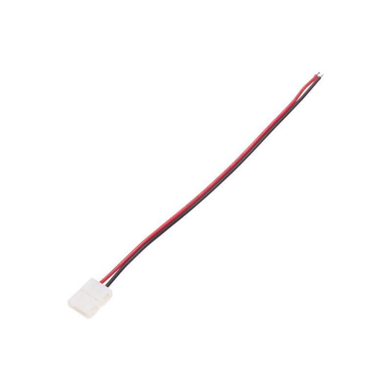 Коннектор с проводами для одноцветной светодиодной ленты SMD 8мм используется для соединения ленты с источником питания - блоком или адаптером. Он заменяет необходимость пайки, ускоряя монтаж и снижая риск повреждения LED-элементов. Применяется в системах внутреннего и внешнего освещения: подсветка потолков, шкафов, ниш, рекламных щитов, декоративных элементов интерьера и фасадов.