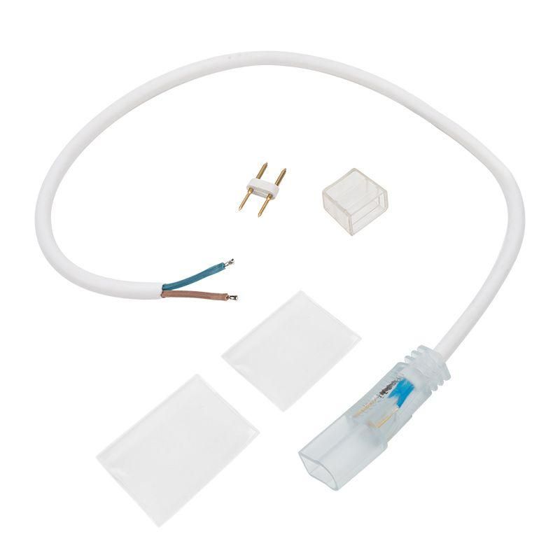 Коннектор с проводом для двухстороннего неона 8x16мм от Neon-Night (арт. 134-051) предназначен для надёжного подключения и соединения отрезков двухстороннего неона 8x16 мм с рабочим напряжением 24 В или 220 В. Комплект включает всё необходимое для безопасной сборки световой ленты без лишних доработок.