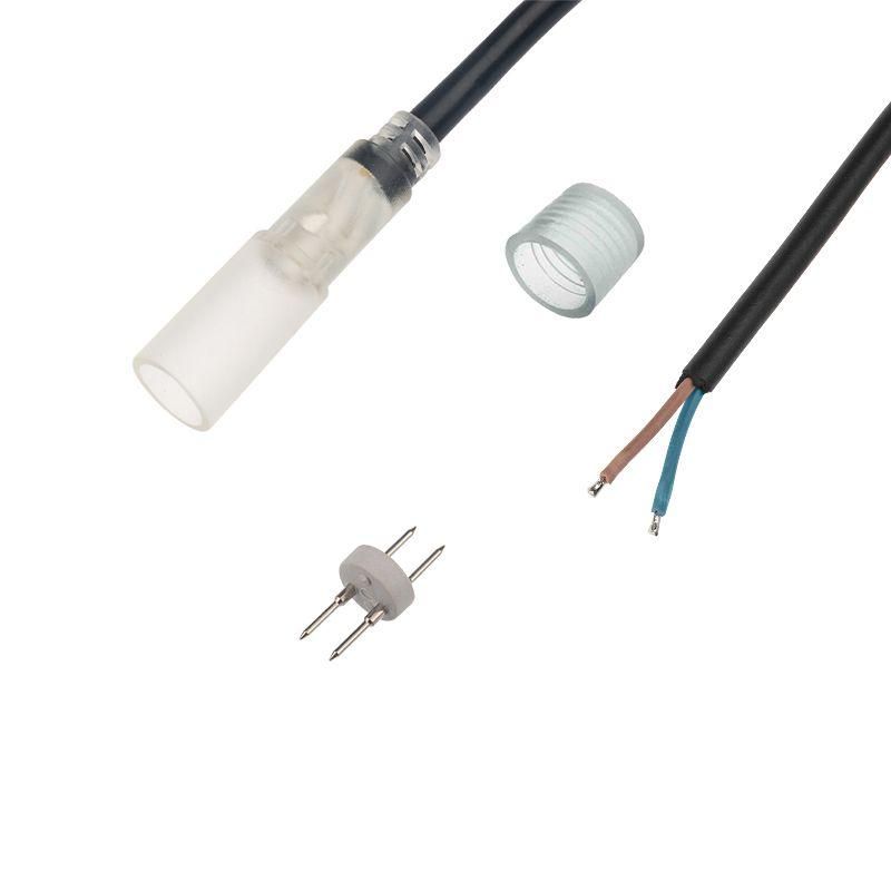 Коннектор с проводом для двухжильного дюралайта, диаметр 13 мм (соответствует артикулу 124-018 бренда Neon-Night) - это готовый комплект для надёжного подключения гибкого светодиодного светильника типа дюралайт. Подходит для установки на улице и внутри помещений, где требуется водонепроницаемое соединение.