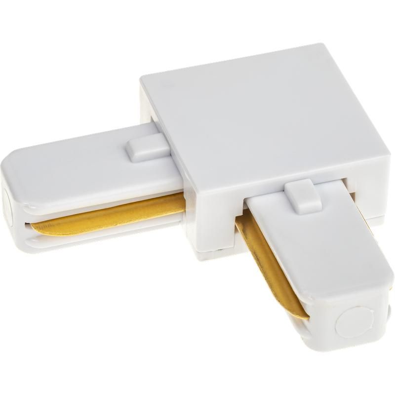 Коннектор трековый для соединения шинопровода, L-образный, жесткий, пластик/медь, белый от бренда Ritter (артикул 59745 6) предназначен для создания угловых участков в системах трекового освещения, обеспечивая надёжное электрическое и механическое соединение между секциями шинопровода.