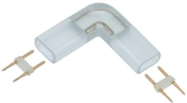 Коннектор угловой 5шт MONO 12мм (разъем-разъем) используется для соединения двух участков светодиодной ленты 220 В под прямым углом. Подходит для установки в местах, где лента должна менять направление - например, вокруг колонн, в углах потолков, на фасадах зданий или внутри ниш. Применяется в коммерческом и бытовом освещении, когда нужна быстрая замена пайки на механическое соединение.