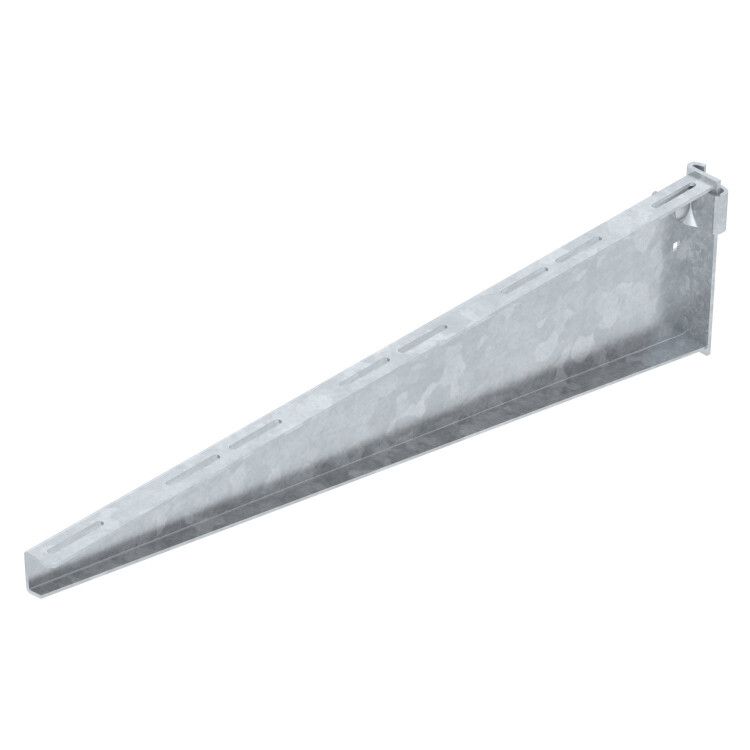 Кронштейн 810 мм горячеоцинкованный от OBO BETTERMANN (артикул AS 55 81 FT, артикул 6419328) - прочный опорный элемент для крепления кабельных лотков к I-образным стойкам, рассчитанный на высокие механические нагрузки и долговечную работу в агрессивных средах.