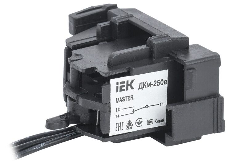 Контакт дополнительный ДКм-250е (ДКм-35) с электронным расцепителем совместим исключительно с автоматическими выключателями серии MASTER от IEK. Установка выполняется фронтально - устройство вставляется в специальное гнездо на лицевой панели выключателя и защёлкивается. Подключение осуществляется через винтовые клеммы: достаточно зачистить провода на 5–7 мм и затянуть их с усилием, соответствующим рекомендациям производителя.