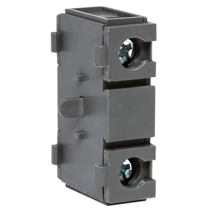 Контакт дополнительно устанавливается на корпус выключателя-разъединителя TwinBlock путём фиксации в специальный штатный паз. Монтаж выполняется после установки самого аппарата в щит. Кабель подключается к клеммам контакта - доступны зажимы для проводов сечением до 2,5 мм2. Убедитесь, что выбранный модель TwinBlock имеет свободную нишу для установки дополнительного контакта - он несовместим с базовыми версиями без возможности расширения.