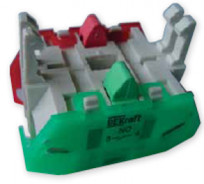 Контакт ДК-22 совместим исключительно с устройствами DEKraft: кнопочные выключатели ВК-22, ВК-30 и переключатели ПЕ-22, ПЕ-30. Монтаж выполняется сбоку - фиксируется механически на штыревых направляющих. Для установки одного контакта достаточно просто вставить его в нужную позицию. При использовании нескольких контактов: