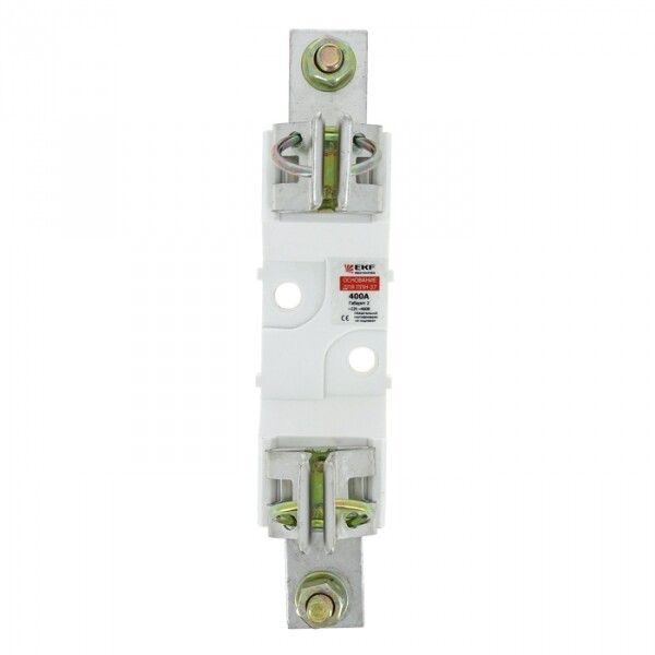Основание совместимо исключительно с предохранителями ППН-37 габарита 2 (NH2). Нельзя использовать другие типы вставок - даже если они кажутся похожими по форме. Монтаж выполняется на жесткую металлическую плату (например, DIN-рейку с переходным кронштейном или специализированный щитовой модуль). Клеммы имеют зажимы для проводов сечением до 50 мм2. Перед установкой проверьте соответствие посадочных отверстий и глубины крепления - не используйте силовые методы. После монтажа убедитесь, что вставка плотно вошла в контактные площадки - слабый контакт вызывает перегрев.