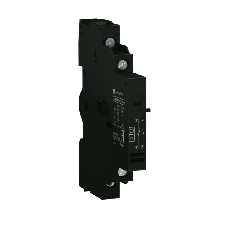 Этот контакт предназначен для передачи информации о положении автомата: включен/выключен, произошло ли аварийное отключение. Он работает в паре с автоматическими выключателями SystemePact GM2 и позволяет подключить внешние устройства - индикаторы, реле, контроллеры, панели управления. Применяется там, где важно знать состояние аппарата без физического осмотра: на производстве, в распределительных щитах, на конвейерах, насосных станциях, в системах безопасности.