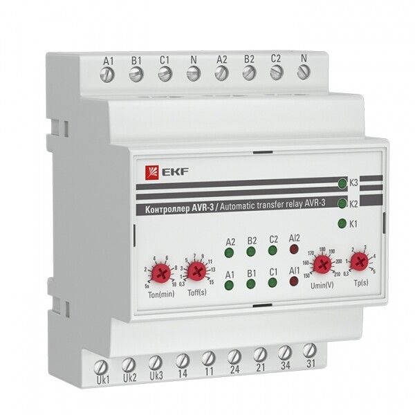 Контроллер автоматического ввода резерва AVR-3 PROxima от EKF обеспечивает автоматическое переключение между двумя источниками питания с использованием секционного контактора, что особенно важно для бесперебойной работы критичных нагрузок. Артикул rel-avr-3 - решение для промышленных объектов, где требуется надежная работа системы АВР.