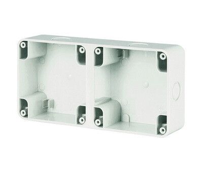 Коробка монтажная для наружной установки на 2 поста DKC используется для размещения коммутационных устройств - например, выключателей, розеток или контакторов - в местах с высокой влажностью, запылённостью или перепадами температур. Подходит для установки на фасадах зданий, в промышленных зонах, на улицах, в парковках и других открытых объектах. Несмотря на то, что в описании указано применение для розеток скрытого монтажа, сама коробка предназначена исключительно для наружной установки и не требует штробления стен.