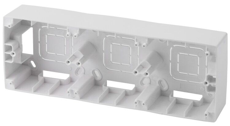 Коробка накладного монтажа 3 поста Эра12, белый (артикул б0043180) - это корпус для установки коммуникационных устройств серии Эра 12 на стену. Предназначена для фиксации переключателей, розеток и других элементов управления, обеспечивая надежную базу без необходимости штробления.