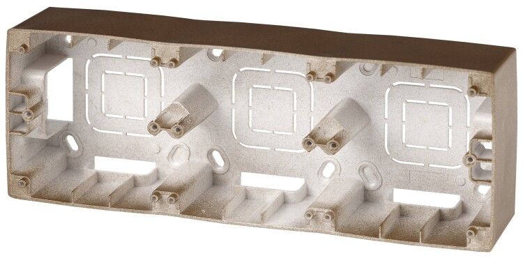 Коробка накладного монтажа 3 поста, бронza предназначена для фиксации электроустановочных изделий - например, выключателей или розеток - на поверхности стены. Она используется там, где невозможно или нецелесообразно делать штрабы: в деревянных домах, офисах с кирпичными перегородками, временных сооружениях или при ремонте без капитальных работ. Коробка совместима с механизмами серии Эра 12, обеспечивая гармоничную сборку и удобство обслуживания.