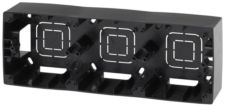 Коробка накладного монтажа 3 поста, чёрный предназначена для монтажа электроустановочных изделий - например, выключателей или розеток - на поверхность стены, когда невозможно или нецелесообразно делать штробу. Подходит для использования в квартирах, офисах, административных зданиях. Особенно удобна при реконструкции старой проводки или в случаях, где требуется быстрая замена оборудования без демонтажа отделки.