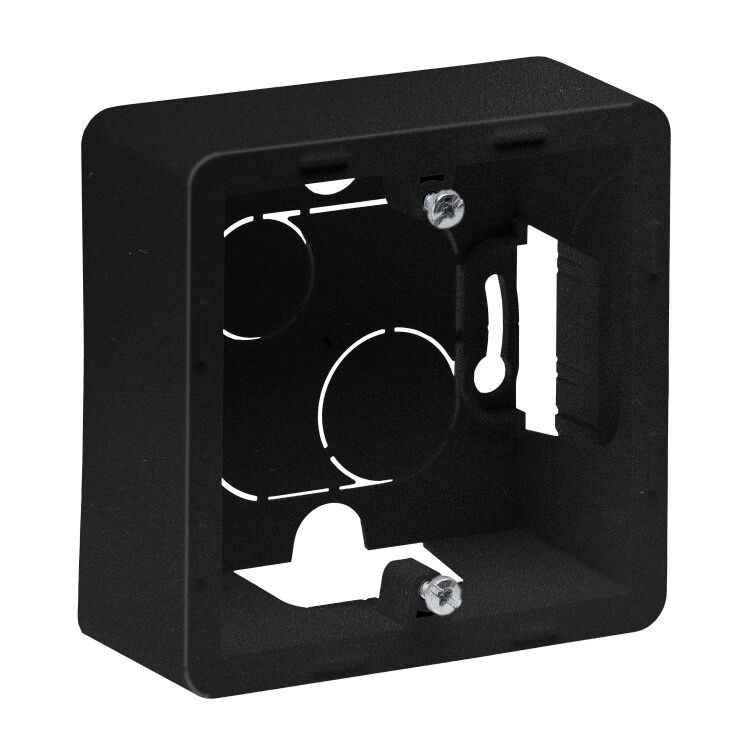 Коробка накладного монтажа 1-местная антрацит совместима исключительно с механизмами серии Legrand Inspiria. Для полноценной установки требуется дополнительно приобрести декоративную 1-постовую рамку того же цвета - без неё устройство будет незавершённым.