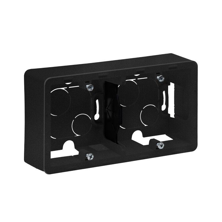 Коробка накладного монтажа 2-местная антрацит совместима исключительно с механизмами серии Legrand Inspiria. Для завершения внешнего вида требуется установка декоративной 2-постовой рамки того же цвета. Монтаж осуществляется на ровную поверхность с помощью саморезов (не входят в комплект). Кабели подводятся через предусмотренные отверстия - можно использовать гофротрубу, мини-канал или ввод прямо из стены. Гибкая съёмная перегородка внутри позволяет разделять провода по группам, снижая риск взаимных помех.