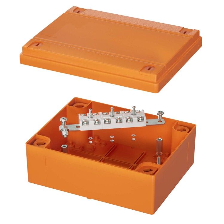 Коробка пластиковая FS с гладкими стенками и клеммниками IP56 - это ответвительная коробка для безопасного соединения и распределения проводов в условиях повышенной опасности, включая пожароопасные помещения. Бренд DKC (ДКС), артикул fsk40610, выполнена из термостойкого пластика и рассчитана на работу при температуре до +60 C, обеспечивая сохранение целостности цепи до 90 минут при возгорании.