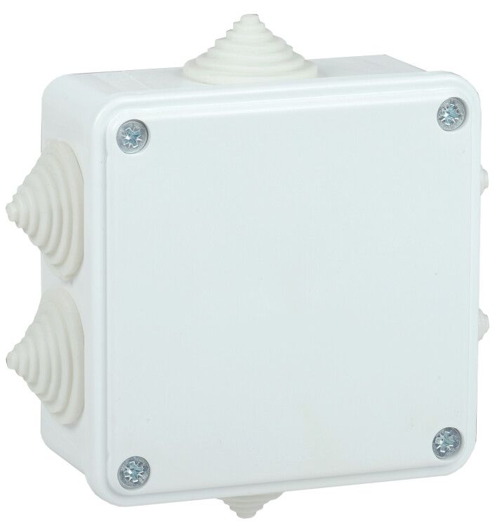 Коробка распределительная КМ для открытой проводки 100х100х45 мм IP44 6 вводов белая монтируется настенно-потолочно с помощью саморезов или дюбелей. Открытый способ установки исключает необходимость штробления стен. Все вводы выполнены для фиксации труб диаметром до 20 мм - подходят стандартные ПВХ и металлические трубы. Крышка открывается без инструментов, что упрощает доступ к внутренним соединениям при проверках или ремонте.