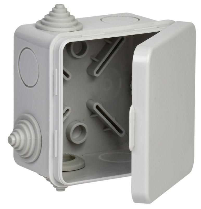 Коробка распаячная КМ41238 для открытой проводки соткидной крышкой 80х80х50мм IP54 (RAL 7035, 7 гермовводов) IEK - UKO31-080-080-050-K03-54