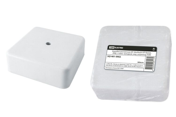 Коробка распределительная КР 50х50х20 о/п белая, IP40, с клем. колодкой, инд. штрихкод | SQ1401-0902 TDM