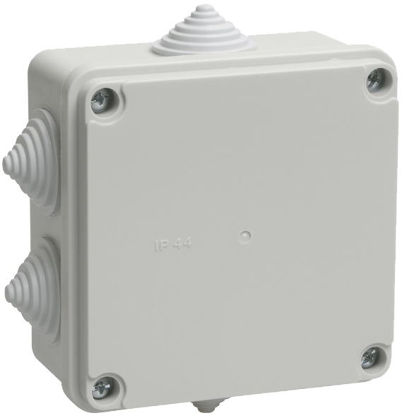 Коробка распределительная для открытой проводки 100х100х50 мм IP55 (RAL7035, 6 гермовводов) монтируется настенно или потолочно с помощью дюбелей или саморезов. Гермовводы уже установлены - достаточно просверлить отверстия под них и вставить кабели. Совместима с жёсткими и гофрированными трубами диаметром до 25 мм. Крышка-заглушка фиксируется на защёлках - открывается без инструментов для проверки или ремонта. Для надёжного соединения используйте кабельные зажимы внутри коробки, чтобы исключить нагрузку на провода.