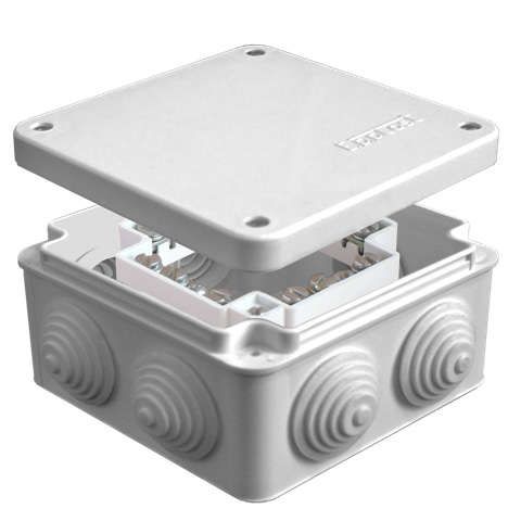 Коробка распределительная ОП 105х105х56мм IP54 с клемм. 7 выходов 4 гермоввода 16А 24 контакта крышка на винтах сер. Epplast 110058 Электропромпласт