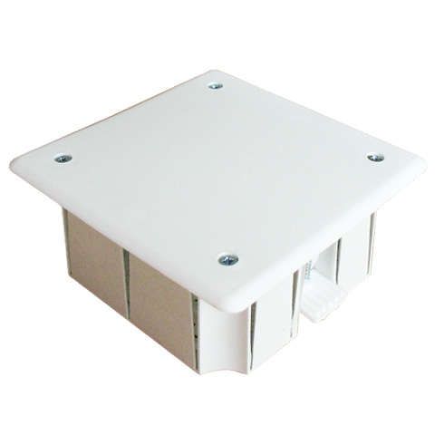 Коробка распределительная пластиковая 92х92х40 мм для гипсокартона 8 выходов крышка на винтах с лапками используется для сборки и распределения электрических соединений внутри стен из гипсокартона. Подходит для монтажа выключателей, розеток, модульных устройств и других элементов бытовой электросети. Устанавливается исключительно в тонких перегородках - не требует углубления в бетон или кирпич.