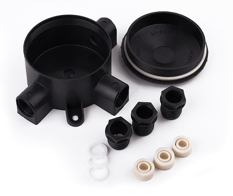 Каждый из трёх вводов выполнен с внутренней резьбой и предусматривает использование пластмассовых гаек и уплотнительных сальников. Для монтажа необходимо: