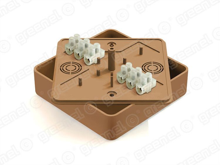 Коробка распределительная для о/п 100х100х29мм с клеммной колодкой ЗВИ-10 (2,5-6мм2) 6 клемм, IP40, цвет -ОРЕХ (42шт) | GE41219-14 GREENEL