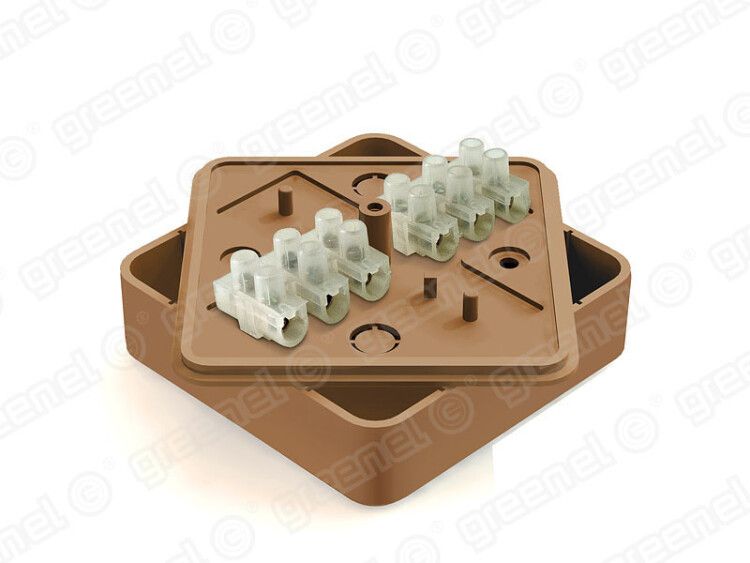 Коробка распределительная для о/п 75х75х20мм с клеммной колодкой ЗВИ-3 (1,0-2,5мм2) 6 клемм, IP40, цвет -ОРЕХ (100шт) | GE41212-14 GREENEL