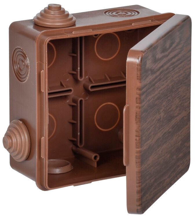 Коробка распределительная КМ 100х100х50мм для наружного монтажа с откидной крышкой IP54 8 вв. дуб - UKO31-100-100-050-K24-54 IEK