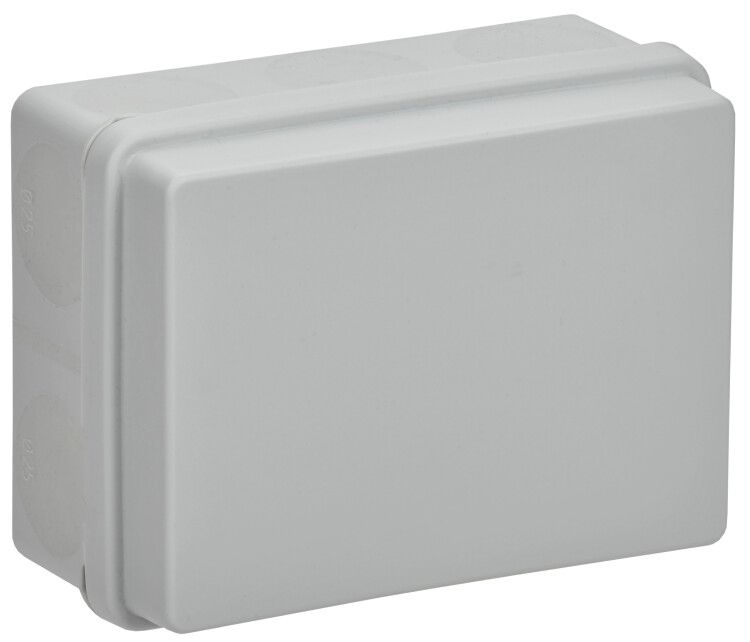 Коробка распределительная/распаячная КМ42441 имеет прямой способ монтажа - крепится на поверхность с помощью саморезов через отверстия в боковых стенках. Установка возможна как на вертикальную стену, так и на горизонтальную поверхность (например, потолок). Все вводы расположены равномерно по периметру, в том числе с тыльной стороны - удобно при сложных трассировках. Для герметизации вводов используются стандартные резиновые уплотнители (не входят в комплект, требуются дополнительно). Крышка фиксируется защёлками - открывается без инструментов, что ускоряет обслуживание.