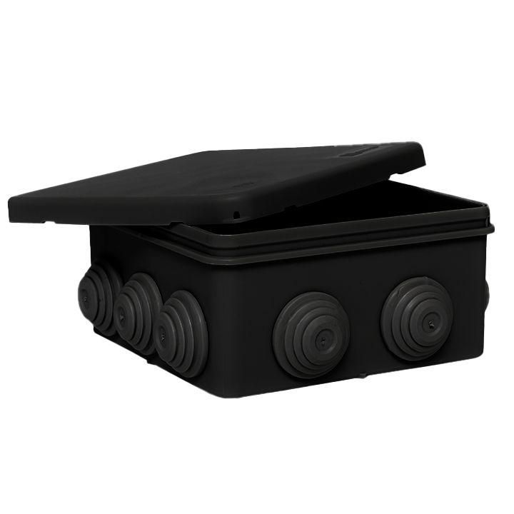Коробка распределительная КМР-030-014 с крышкой 100х100х50, 10 мембранных вводов, IP55, чёрная от EKF - компактное решение для защиты кабельных соединений в условиях повышенной влажности, пыли и перепадов температур. Подходит для наружной и внутренней установки в системах силовой и слаботочной проводки.
