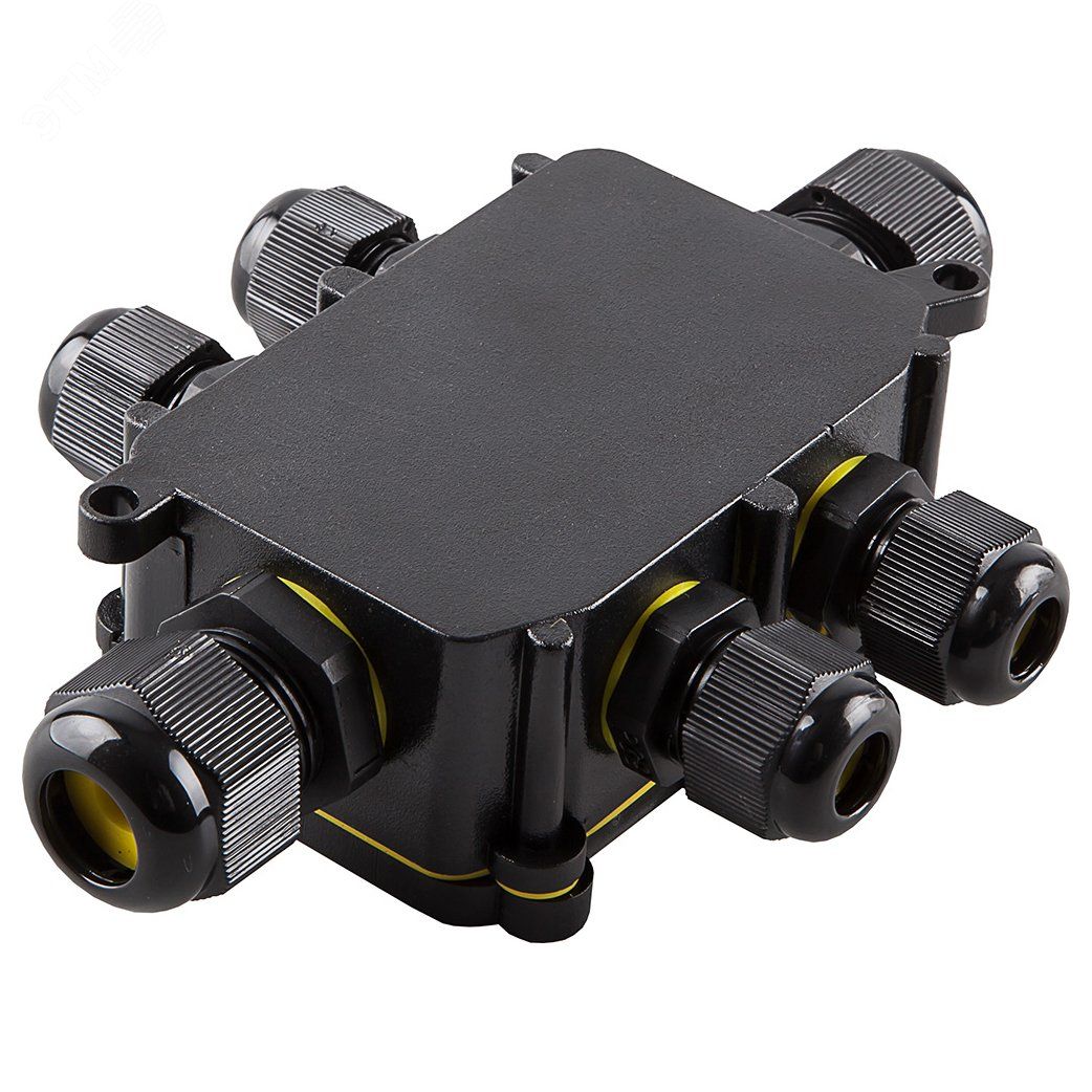 Эта коробка используется для безопасного соединения и распределения электрических кабелей в местах, где требуется защита от воды, пыли и механических воздействий. Каждый из шести входов позволяет ввести один кабель, а встроенная клемма обеспечивает надёжное соединение проводов внутри корпуса. Коробка распределительная водонепроницаемая на 6 выходов, с клеммой в комплекте, 450V, 140х100х36, черная применяется там, где обычные распределительные коробки недостаточно защищены - например, на фасадах зданий, в промышленных цехах, на уличном освещении, у насосных станций и в системах автоматизации.