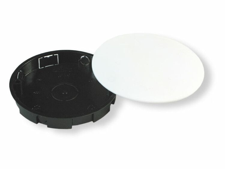 Коробка рассчитана исключительно на скрытую установку в сплошных стенах. Для монтажа необходимо выдолбить нишу диаметром около 96 мм и глубиной не менее 14 мм - так, чтобы корпус полностью вошёл в стену, а крышка осталась заподлицо. Штампованные вводы подходят для кабелей с внешним диаметром до 8–10 мм; для более крупных кабелей потребуется доработка отверстий. Крышка не требует винтов - достаточно нажать до щелчка. Убедитесь, что вводы расположены равномерно, чтобы избежать перегрузки одного участка корпуса.