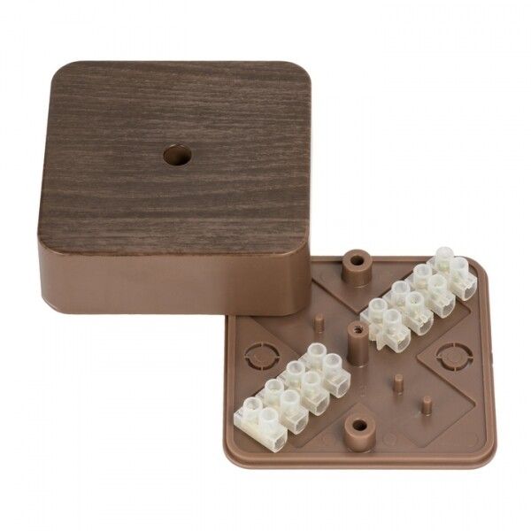 Коробка распределительная КМР-030-030кг (75х75х25) с клеммником тёмное дерево EKF PROxima | plc-kmr-030-030kg-t